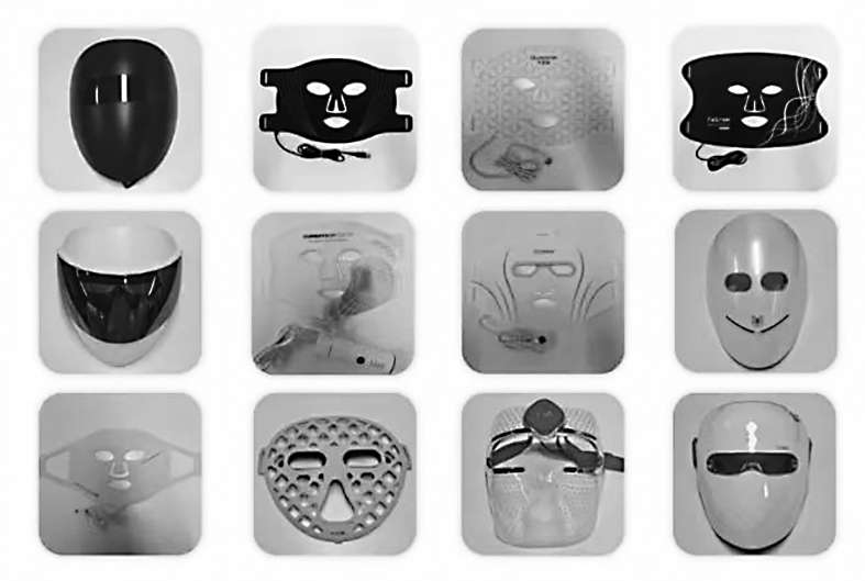 根据产品宣传和相关文献研究结果,LED光通常用不同颜色来代表波长区间,对皮肤具有不同的作用,例如一般认为红光可促进受损皮肤修复,促进新陈代谢;黄光具有减轻局部皮肤敏感,改善红斑和毛细血管扩张的作用;蓝光作用在表皮层,用作杀菌消炎祛痘;绿光能抑制黑色素生成等。试验结果显示,12款样品的波长差异较大,光照类型在2至7种不等,其中以红光、蓝光、黄光、红外光为主。