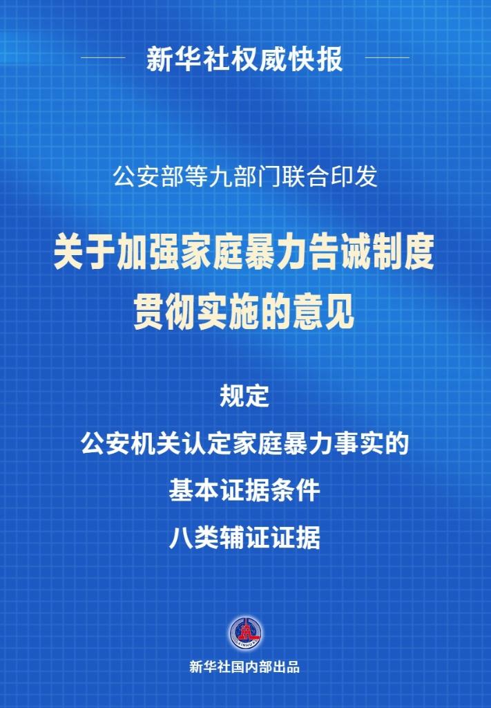 公安部等九部门联合印发《关于加强家庭暴力告诫制度贯彻实施的意见》