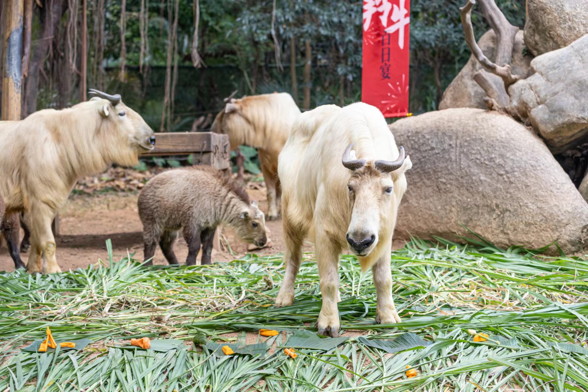 我国一级保护动物金毛羚牛家族“上新”了