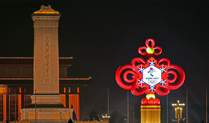 为冬奥赛事增光添彩:北京冬奥景观亮灯