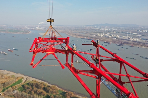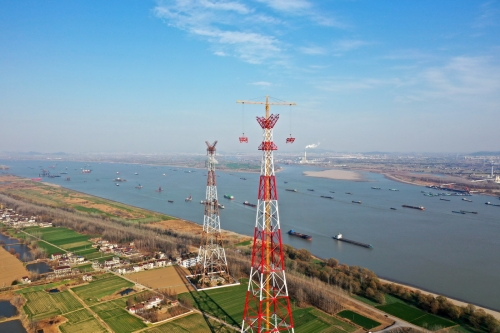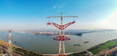 12月26日,位于安徽马鞍山长江边的白鹤滩——江苏±800千伏特高压直流输电工程长江大跨越输电钢管塔封顶。这座输电钢管塔高278.2米,经过建设者60余天的奋战成功封顶。