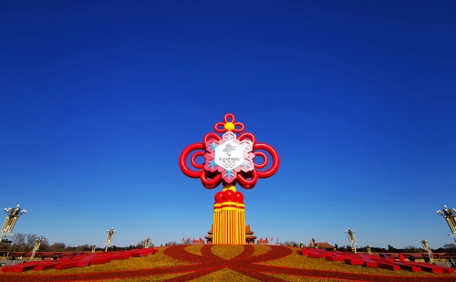 “精彩冬奥”主题花坛装点天安门广场