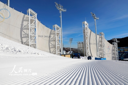 日前,防风墙在北京冬奥会张家口赛区云顶滑雪公园亮相。防风墙的的建立可以有效地减小大风对运动员的干扰,保证赛事的正常进行。武殿森 摄(人民图片网)