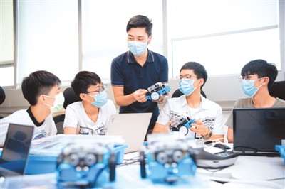 2020年7月14日,“80后”创业者吴以航(中)在澳门青年创业孵化中心为学生上培训课。 |