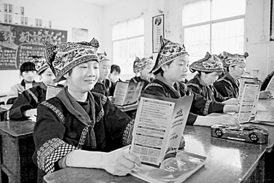 4月15日,贵州省黔东南苗族侗族自治州三穗县台烈镇寨头小学的学生在学习国家安全知识。邹光学摄/光明图片