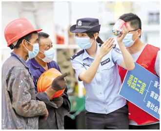 “6·26”国际禁毒日临近,浙江省台州市路桥区金清镇禁毒办把六月定为“禁毒宣传月”,组织公安民警、禁毒社工等进村居、企业、学校、码头开展禁毒宣传,普及禁毒法规,共筑禁毒长城。图为6月8日,金清派出所民警在渔港码头向休渔期维修渔船和织网补网的渔民宣传毒品危害及禁毒法规。