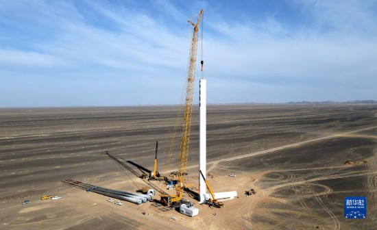 7月1日开始,甘肃敦煌海装北湖49.5兆瓦风电项目首台风机开始吊装。