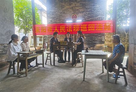 近日,湖南省耒阳市人民法院新市人民法庭法官来到淝田镇红旗村,巡回审理一起邻里纠纷案件。
