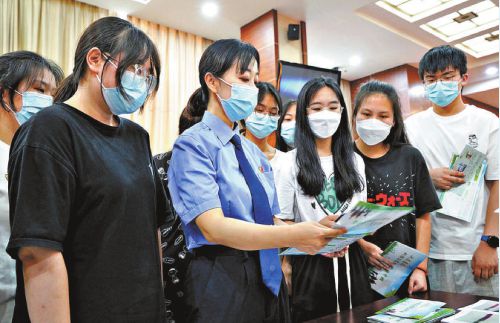 近日,在一起贩卖、运输毒品案件庭审现场,江苏省无锡市梁溪区检察院邀请了邮政部门相关工作人员、一线快递员和高校学生参与案件旁听,近距离感受国家对寄递毒品犯罪的严厉打击和严肃处理。庭审结束后,检察官联合公安民警为参与旁听人员举办了新型毒品辨别小讲座。 本报通讯员范曾 黄维萍摄