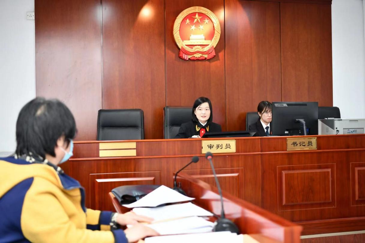 陈扬法官(左二)在开庭中。受访者供图