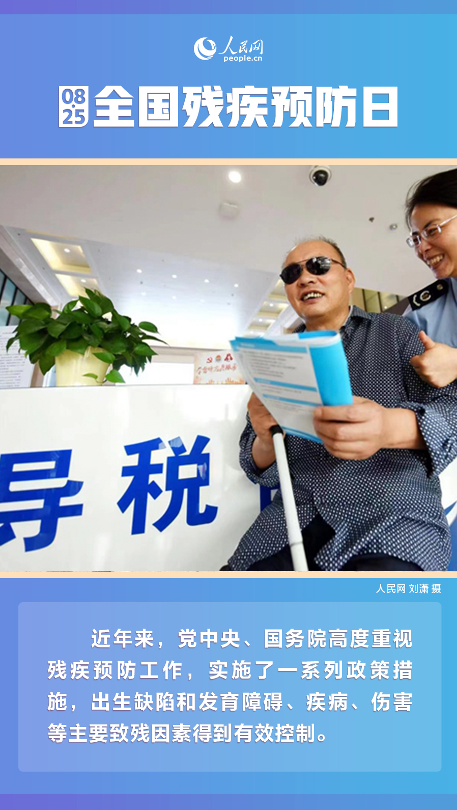 今年8月25日是第六个全国残疾预防日,主题为“普及残疾预防知识,建设健康中国”。近年来,党中央、国务院高度重视残疾预防工作,实施了一系列政策措施,出生缺陷和发育障碍、疾病、伤害等主要致残因素得到有效控制。做好残疾预防对于保障人民群众生命安全和身体健康、提高全民族健康素质、促进经济社会高质量发展具有重大意义。