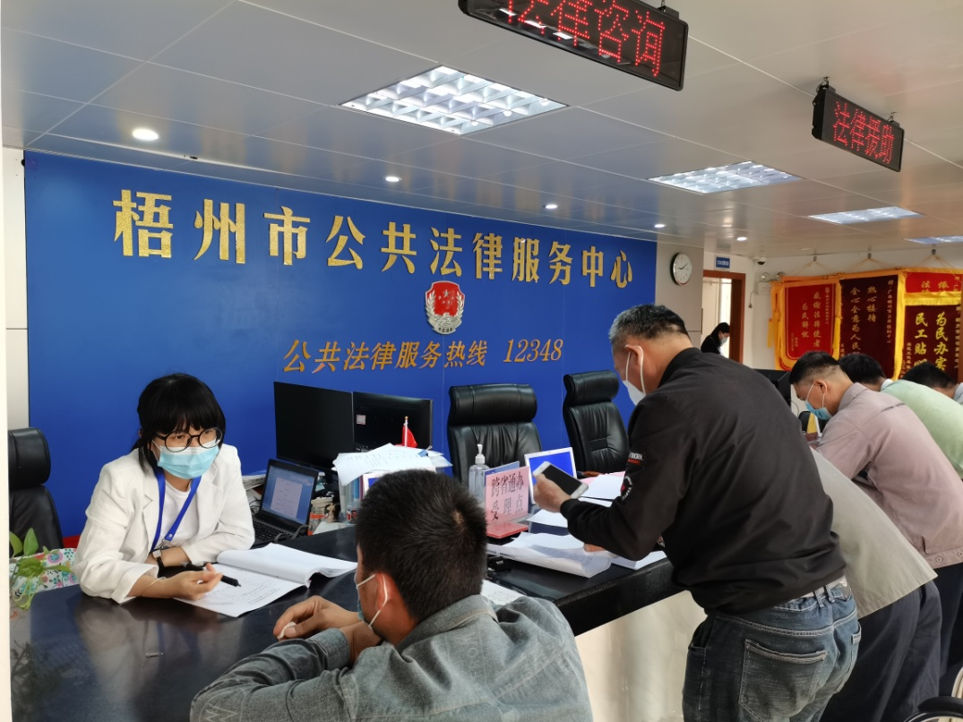 2020年12月,45名农民工因被某公司拖欠工资,到梧州市法律援助中心寻求帮助。韦金雨先安抚好农民工的情绪,迅速组织经验丰富的律师到场协助工作,并协调长洲区人民法院、工业园区等11个部门到法援中心做调解工作。但是因工资结算方式不一致僵持不下,导致公司不肯把钱拿出来。
