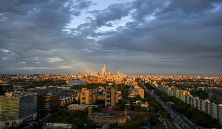 10月3日,夕阳照亮北京CBD的高楼建筑群。据天气预报显示,北京当天冷空气影响逐渐显现,阵风可达七级左右,夜间最低气温预计将降至8℃。 新华社记者 王建华 摄