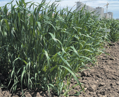 白城市农业科学院燕麦育种试验圃里的燕麦试验株。 |