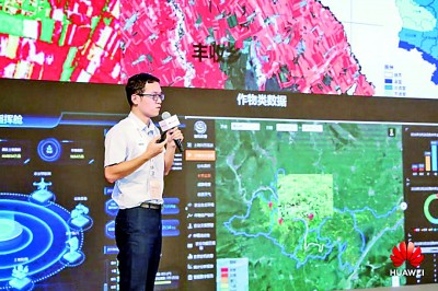 冷伟为合作方讲解卫星遥感大数据在数字农业场景上的应用。受访者供图
