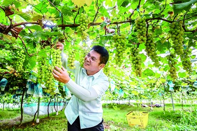 许雪高在合作社的阳光玫瑰葡萄园劳作。受访者供图