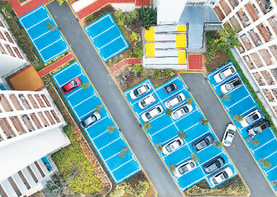 2023年1月12日,在江西省赣州市蓉江新区一处老旧厂区职工宿舍改造成的人才公寓小区,地面上停车位整齐划一,车辆停放有序。 |