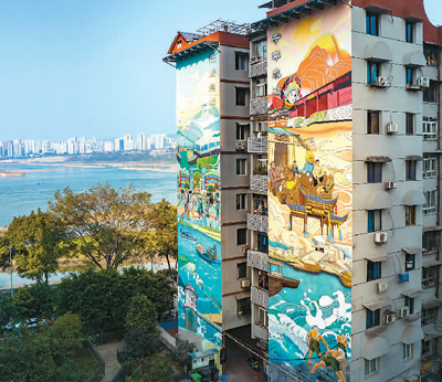 近日,重庆市巴南鱼洞街道鱼轻路的部分老旧小区墙面被粉刷一新,一面面色彩斑斓的彩绘墙让人眼前一亮。 |