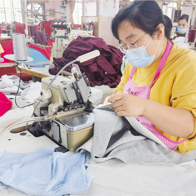 兴隆制衣厂的“妈妈岗”女工高红梅在缝制衣服。 |