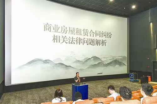 6月9日,重庆市渝中区人民法院开展“送法进商圈”普法宣传活动。为满足更多企业员工及商户代表的现场参与意愿,令听众获得更好的沉浸式普法体验感,特选定在商圈一影院放映厅内进行。图为普法宣讲现场。