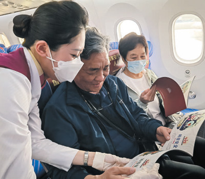 工作人员在“国安号”航班上开展国家安全宣传。 |