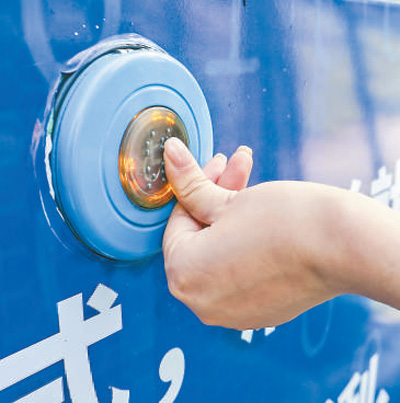江苏苏州无障碍公交车上带有盲文的按钮。 |