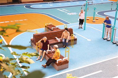 8月30日,在重庆市沙坪坝区石井坡街道一老旧小区,老年人在经过适老化改造的广场上休憩。 |
