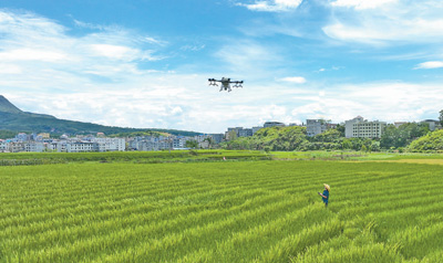 湖南郴州市桂阳县塘市镇杂交水稻制种基地,农技员操控植保无人机为杂交水稻制种授粉。相比传统的人工用竹竿、绳子等“赶花”授粉的方式,无人机制种授粉效率更高、成本更低、质量更好。 |