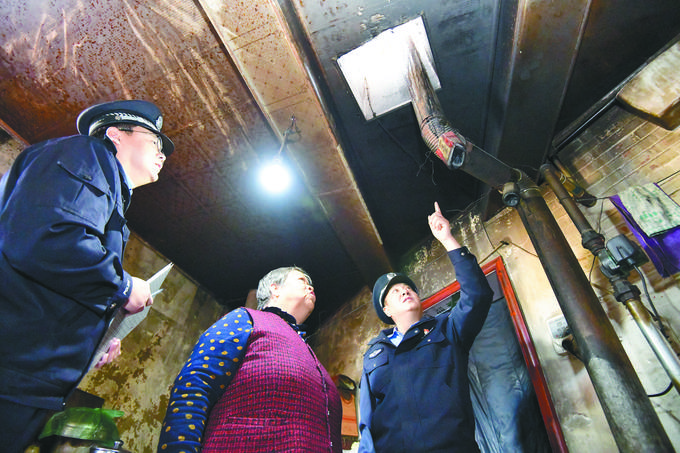 图为民警检查烟囱通风情况。安学海 摄