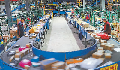 11月12日,在中国邮政集团有限公司衡阳邮区中心局邮件处理中心,工作人员分拣快递包裹。 |