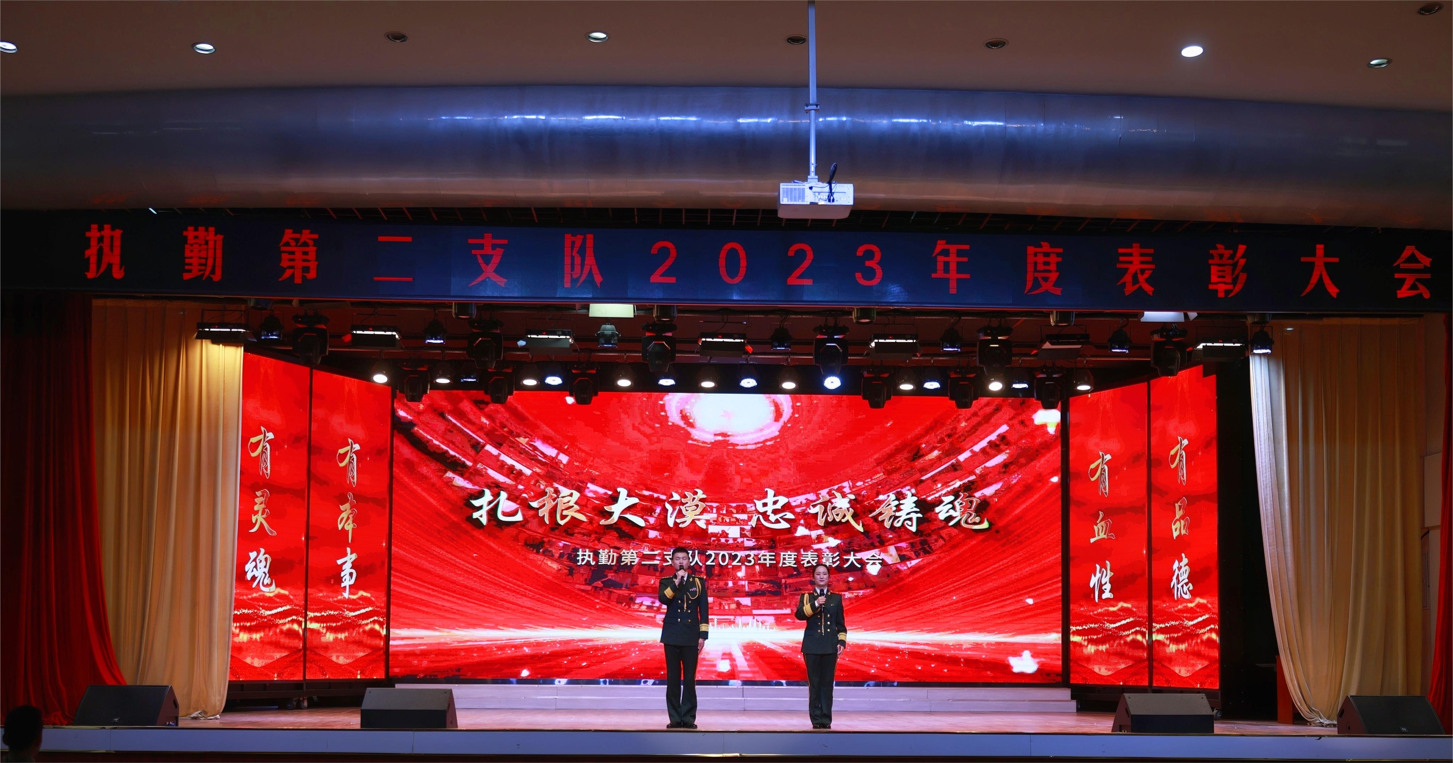 为表彰典型鼓舞干劲,激发强军兴军正能量,近日,武警兵团总队执勤第二支队举行“‘扎根大漠·忠诚铸魂’2023年度表彰大会”。