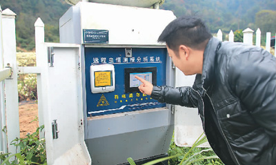 在安徽省黄山市歙县深渡镇定潭村黄山贡菊智慧农业示范基地,工作人员通过虫情测报分析设备查看病虫害情况。 |