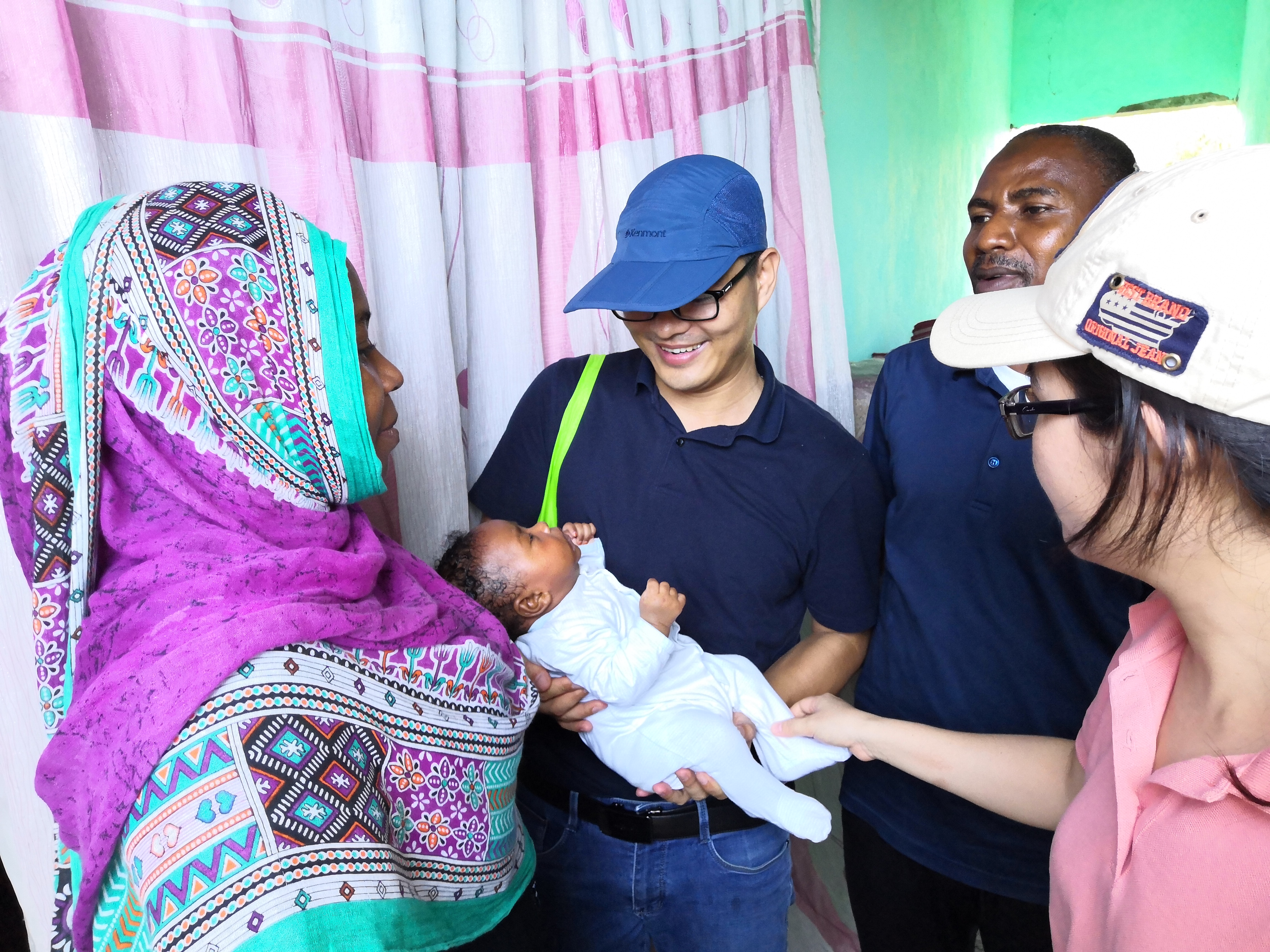 团队成员李国铭(左二)和妻子刘瑞媚(右一)在科摩罗进行入户调查