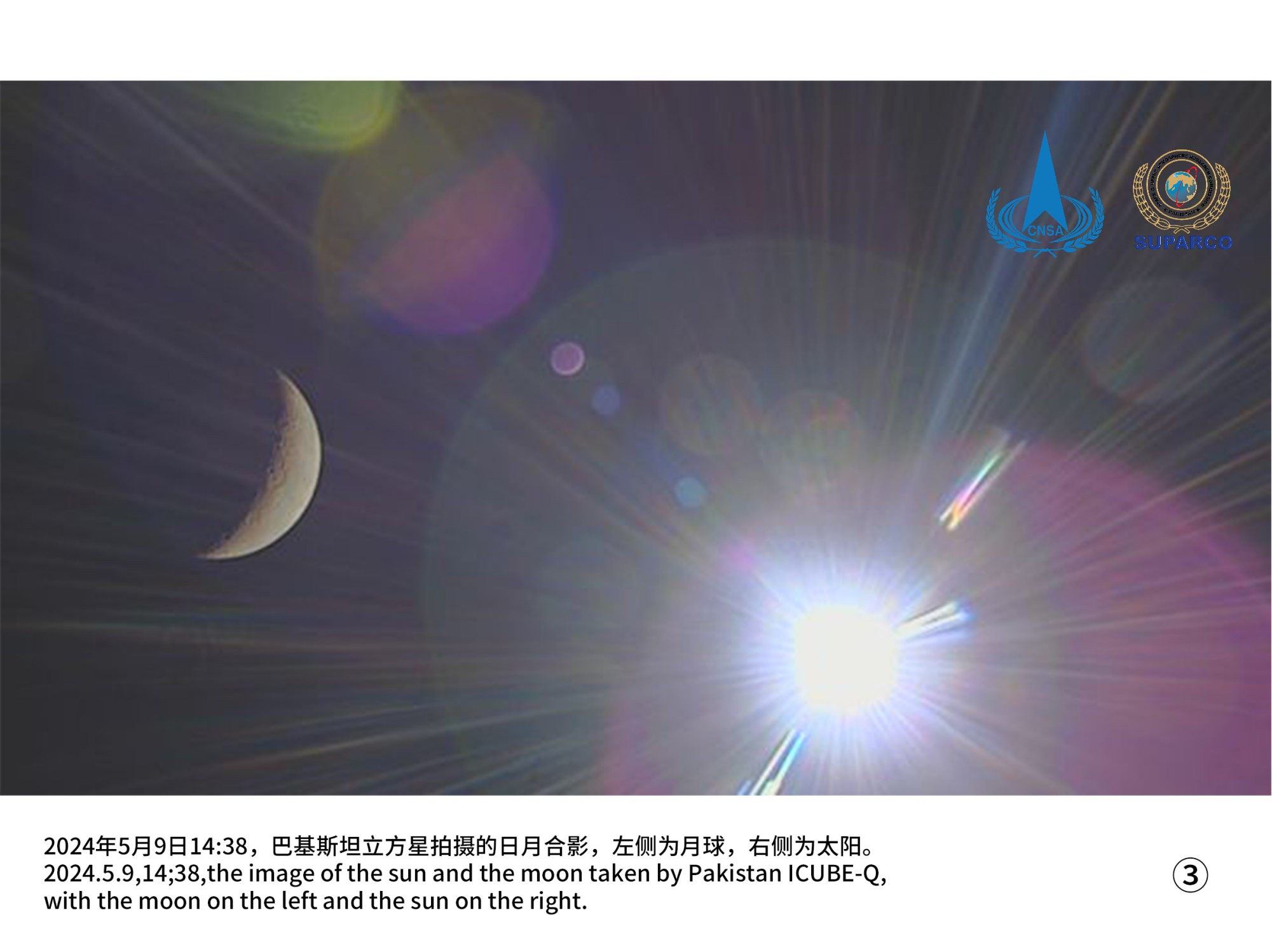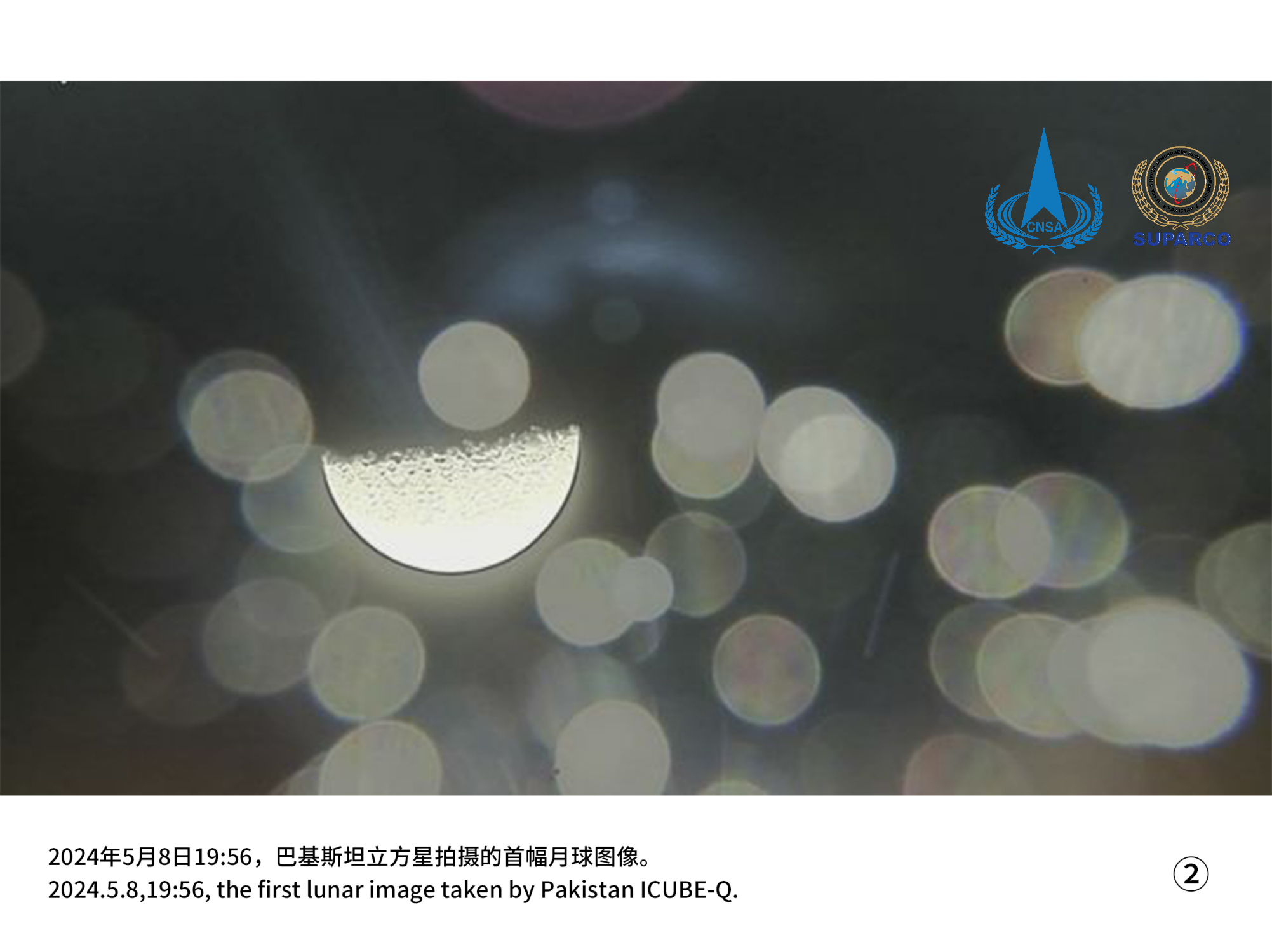 5月8日16时14分,嫦娥六号任务搭载的国际载荷之一巴基斯坦立方星与轨道器在周期12小时环月大椭圆轨道的远月点附近分离,随后成功拍摄第一幅影像。巴基斯坦立方星项目实现“成功分离,获得遥测”的既定目标,取得圆满成功。