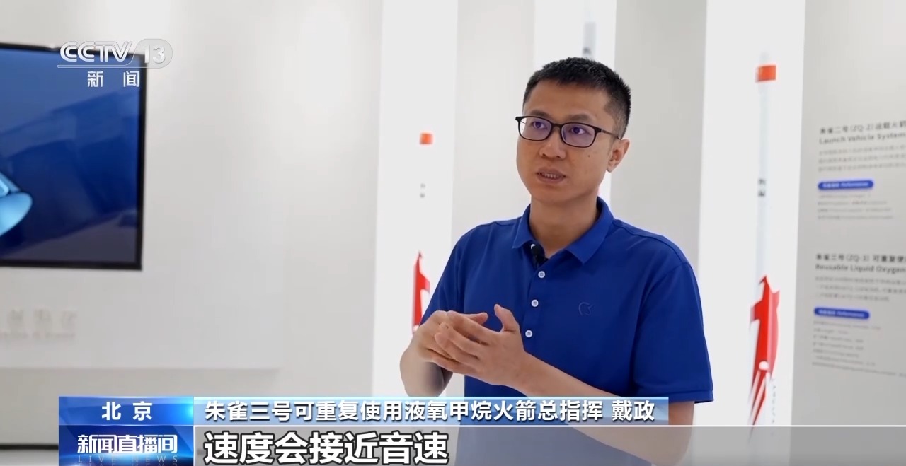 朱雀三号可重复使用液氧甲烷火箭总指挥 戴政:10公里落回到5公里的时候,速度会接近音速,那么就验证这样跨音速状态下,我们栅格舵、发动机再次启动,以及联合控制的能力。