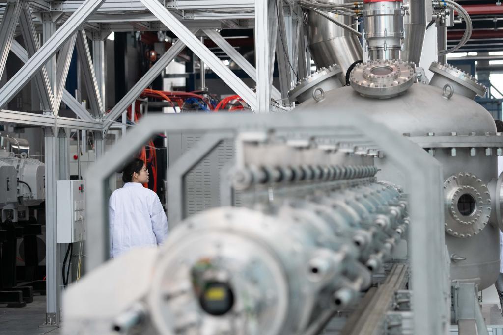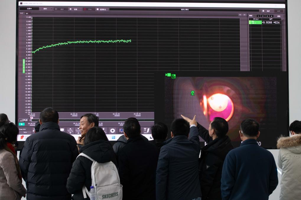 2025年1月14日,科研人员在巡看强流直线等离子体装置“赤霄”的运行状态。新华社记者 张端 摄