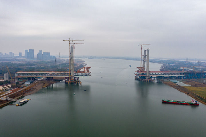 全长19公里的南昌扬子洲赣江公铁大桥,是南昌至九江段高铁的控制性工程。春节假期,中铁大桥局20多名工人在有序架梁施工。